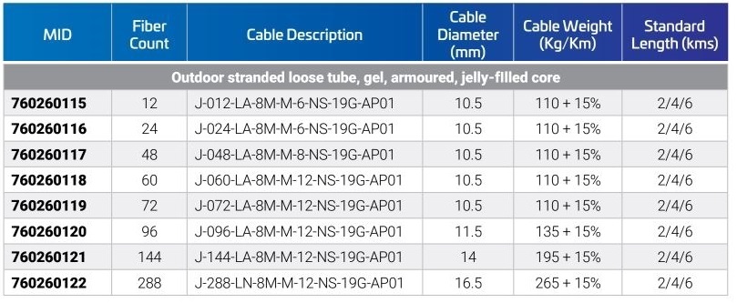 Outdoor stranded loose tube, gel, armoured, jelly-filled core